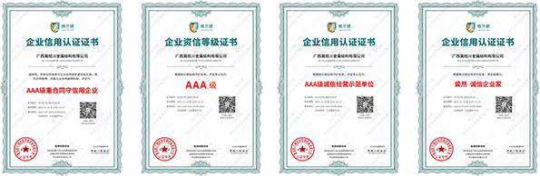 廣西冀桂川金屬結(jié)構(gòu)有限公司始終恪守“誠實經(jīng)營、質(zhì)量保障、信譽(yù)至上、價格合理、合作共贏”的宗旨,嚴(yán)格按照ISO質(zhì)量體系認(rèn)證標(biāo)準(zhǔn),為客戶提供系統(tǒng)的技術(shù)支持和施工建議,有效的為客戶解決難題,竭誠為客戶提供更優(yōu)質(zhì)滿意的工程。